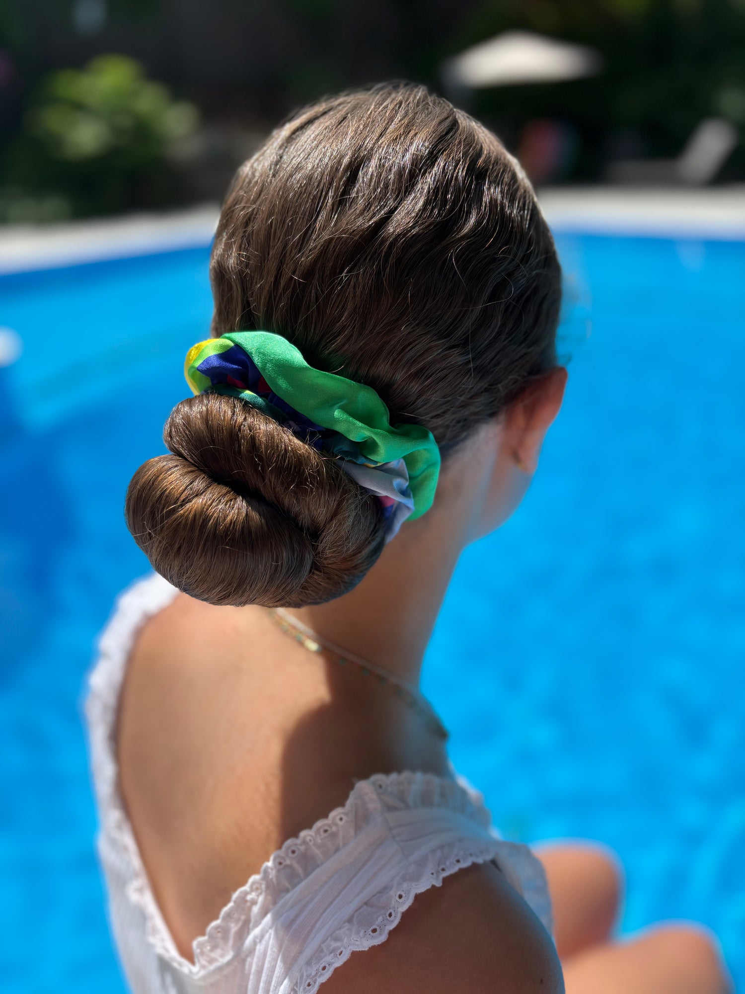 Bright, juicy, and full of zest— the Citrus Variation and Electric Fern Silk Scrunchie Duo draws directly from original painting inspired by sun-drenched greens and golden light.