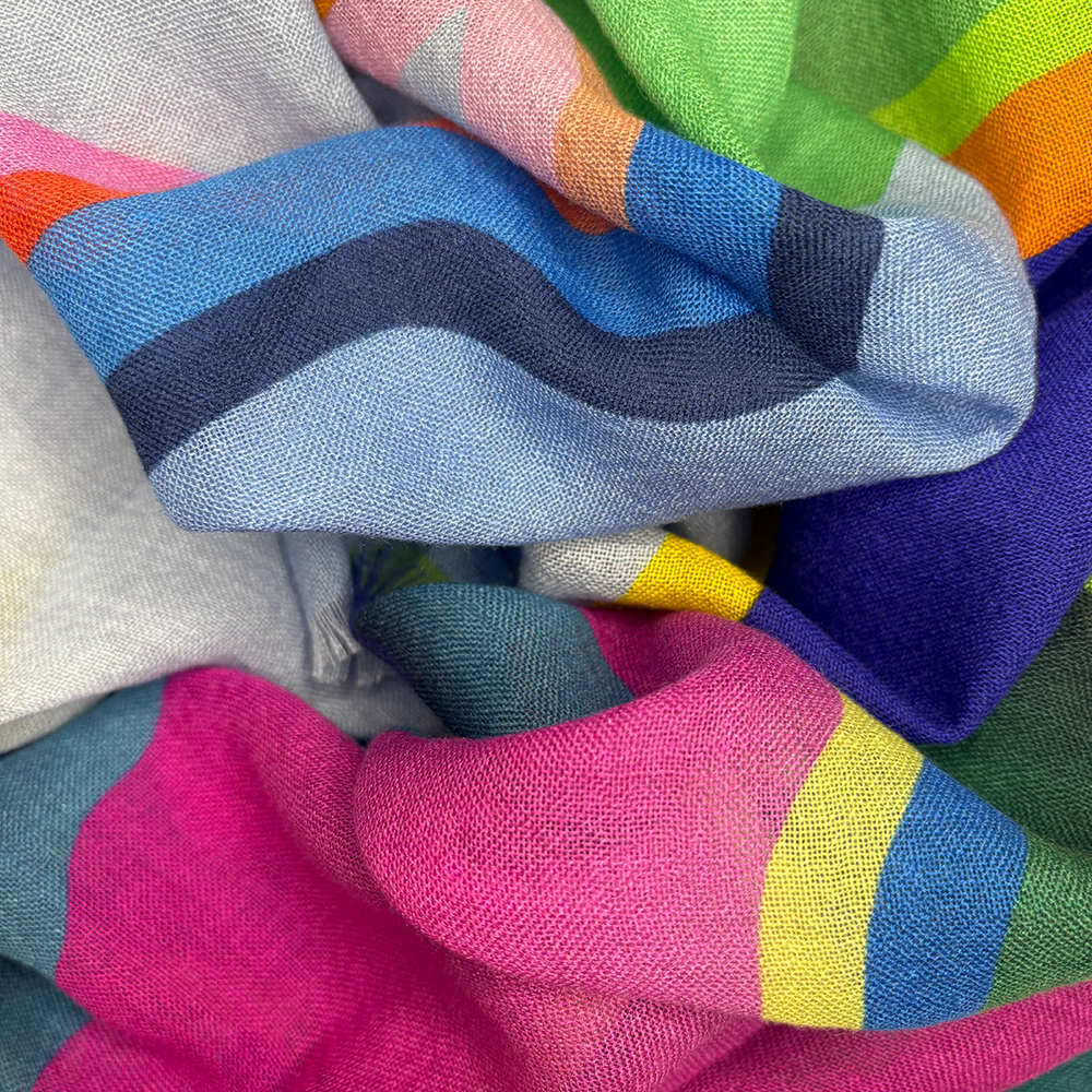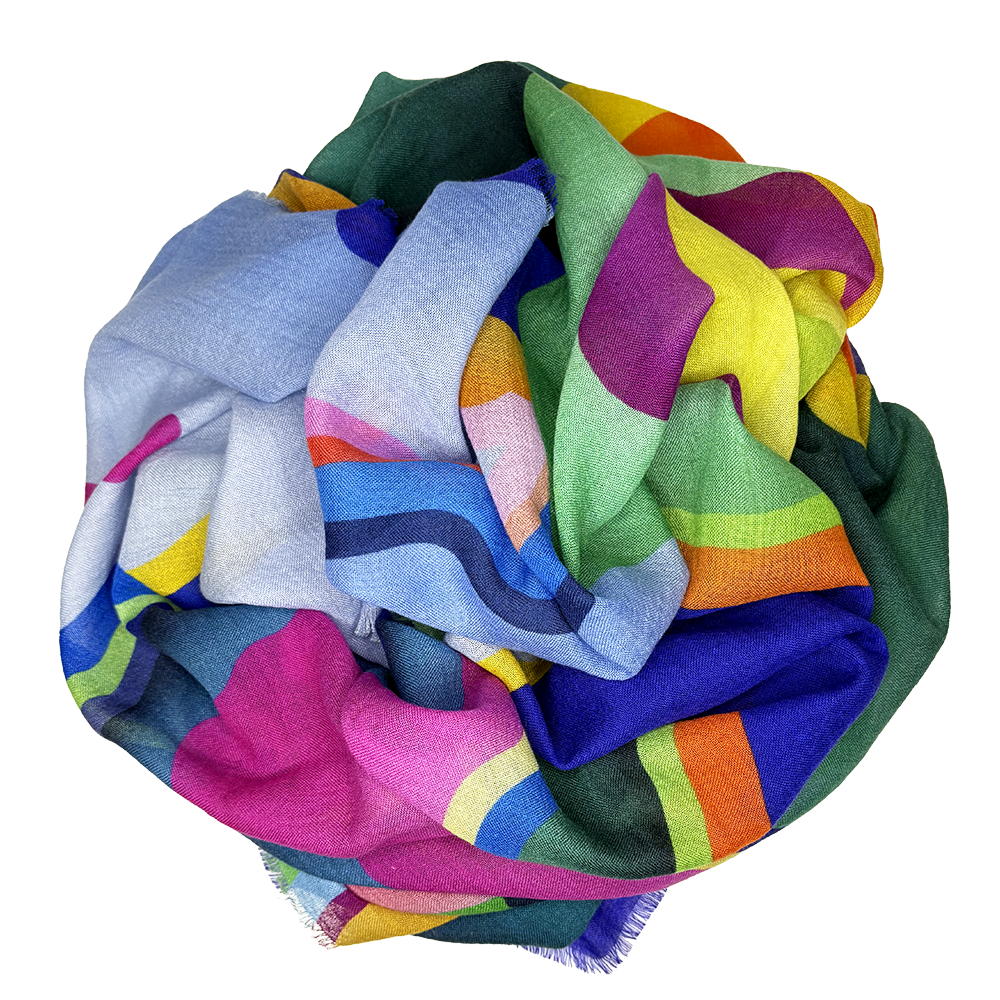 Citrus Variation Muse Cashmere Shawl is exquisitely woven from a refined blend of 50% cashmere and 50% silk, this shawl offers the perfect balance of lightweight warmth and refined softness. The delicate cashmere fibers lend a subtle richness to the vibrant hues, creating a beautifully muted effect that enhances its sophisticated winter charm.